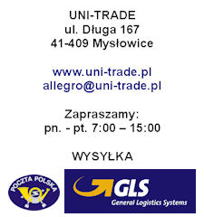 Dziękujemy za zainteresowanie asortymentem naszej firmy! Po dokonaniu zakupów prosimy o skorzystanie z Formularza Opcji Dostawy, aby poinformować nas o adresie, na który mamy wysłać towar oraz o formie płatności, jaką Państwo wybrali. Jeśli zakupili Państwo więcej przedmiotów, prosimy o kontakt w sprawie łącznych kosztów przesyłki. Honorowanymi przez naszą firmę formami płatności są przelew (przedpłata na konto) oraz pobranie pocztowe. Dokonując płatności przelewem prosimy o podanie w tytule przelewu przede wszystkim nicku z Allegro. Brak takiej informacji może znacznie wydłużyć proces realizacji sprzedaży zakupionego przez Państwa towaru. Na płatność oczekujemy 10 dni roboczych. Przekroczenie tego terminu jest równoznaczne z rezygnacją z zakupu i anulowaniem transakcji.