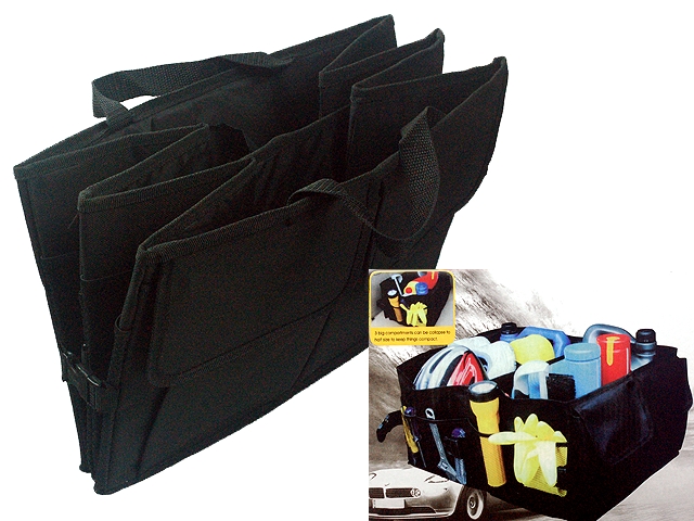 TORBA/ORGANIZER do bagaznika samochodowegoOrganizer idealnie nadaje się do przewożenia zakupów lub innych akcesorii samochodowych w bagażniku. Jest bardzo funkcjonalny, posiada 2 rozdzielone komory (jedna z możliwością podzielenia na pół).