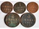 Księstwo Warszawskie, miedziane grosze 5 szt.