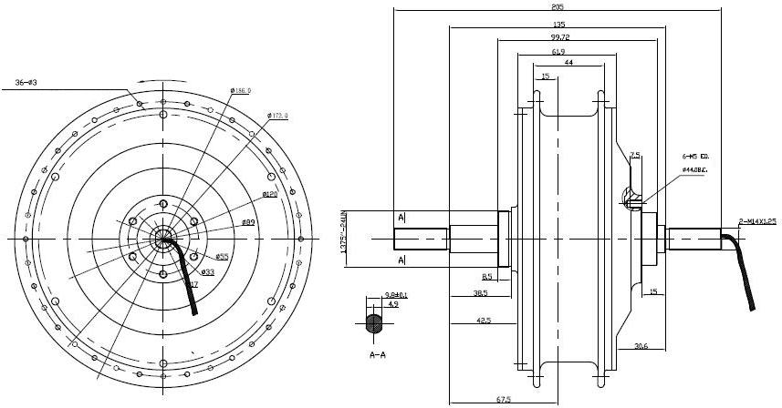Silnik posiada możliwość mocowania hamulca tarczowego. Widać 6 otworów na śruby śrub do których mocuje się tarczę od hamulca. Czyli można wstawić jakikolwiek popularny hamulec: Promax, Shimano, Hayes czy Avid.