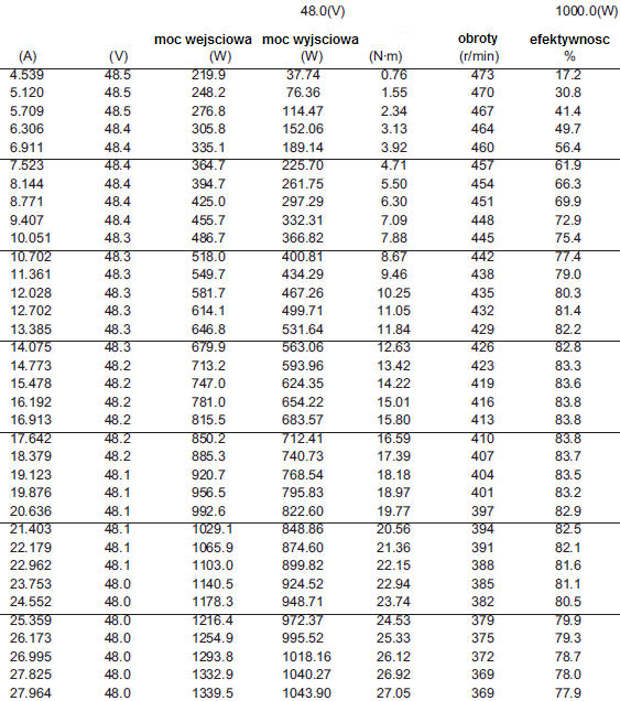 Maksymalna ciągła moc wyjściowa może być ponad 1000W, dzięki czemu silnik może rozpędzić rower nawet do 50 km/h. Jednak silnik się będzie grzał przy takiej długotrwałej pracy.