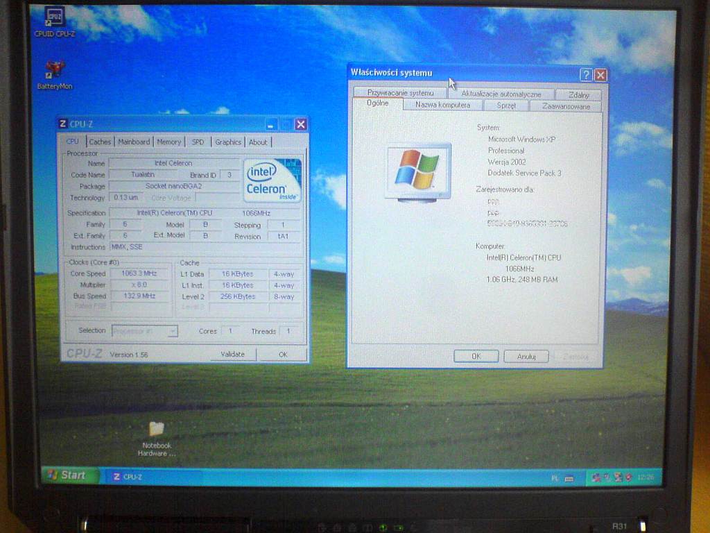 | Procesor : | Intel Celeron M | Taktowanie procesora (MHz): | 1000 |
