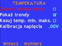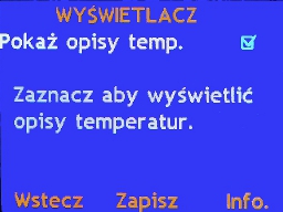 • Edycja opisów temperatur umożliwi Tobie ustawienie dowolnego napisu pod każdą wyświetlaną temperaturą. Teraz możesz ustawić napis "W silniku" "Na dworze" "Wewnątrz" lub dowolny inny - oczywiście tak długi, aby mieścił się na wyświetlaczu.