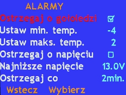 • Sam ustawiasz odstęp czasowy pomiędzy kolejnymi ostrzeżeniami. Jeżeli chcesz, aby ewentualne ostrzeżenia o gołoledzi lub zbyt niskim napięciu pojawiały się rzadziej lub częściej zmieniasz to ustawienie.