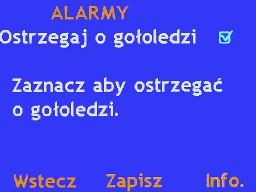 • Ustawianie zakresu temperatur w których ma następować ostrzeganie o gołoledzi. Sam wybierasz przedział temperatur w których mają pojawiać się ostrzeżenia.
