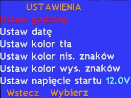 Po włączeniu samochodu na termometrze zostanie wyświetlony napis początkowy. Napis ten możesz zmienić w dowolnej chwili. Możesz ustawić "Szerokiej Drogi", "Witaj Adaś", "Zapnij Pasy" lub dowolny inny tak, aby zmieścił się w dwóch wierszach. Oczywiście jeżeli chcesz możesz wyłączyć wyświetlanie tego napisu, jak również ustawić jak długo ma być wyświetlany.