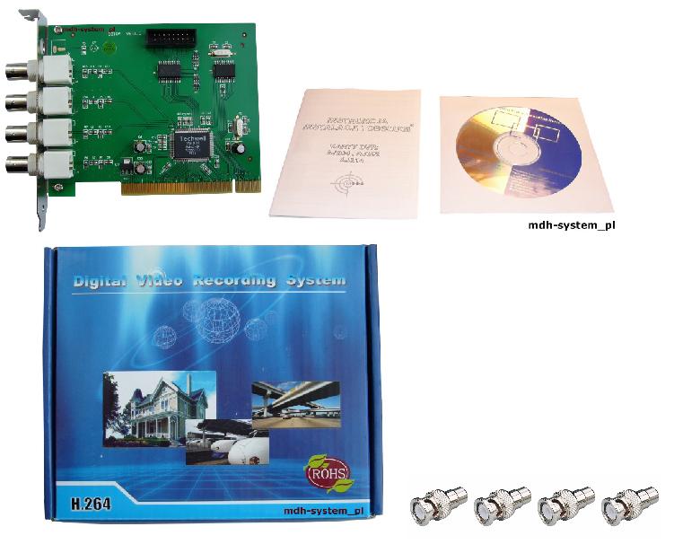 Skład zestawu: - Karta DVR - Płyta CD z oprogramowaniem - Drukowana instrukcje w j. polskim - Drukowana instrukcje konfiguracji karty pod zmiennym IP ( Neostrada, Net 24, itp) - Przejściówki BNC <--> CHINCH - 4 szt