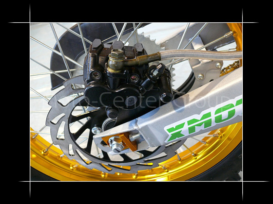 Pełna regulacja twardości tylniego amortyzatora oraz skoku daje możliwość regulacji wysokości siodełka oraz twarde i miękkie zestrojenie w terenie. Stopka kierowcy i dźwigni hamulca jest w pełni składana co przy nawet małym upadku daje efekt szybkiego powrotu do jazdy bez jakichkolwiek napraw.