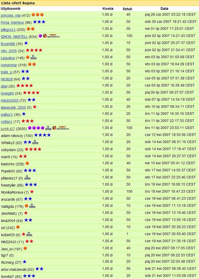 FortunaGrzegorz (57) 1,00 zł 50 pon 01 gru 2008 12:12:00 CET