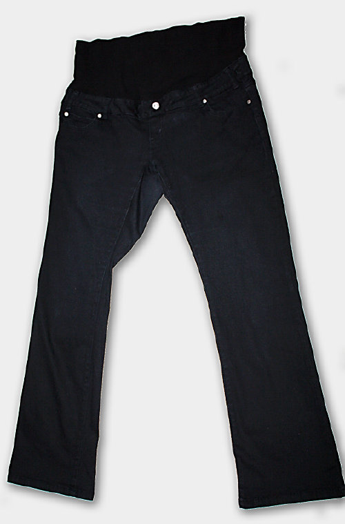 Oryginalne i niepowtarzalne używane jeansy dla przyszłej mamy - klasyka w eleganckim wydaniu: proste nogawki, zawsze modny czarny kolor, niezwykle komfortowy krój - wycięte pod brzuszek z miękkim panelem, wewnętrzna guma w pasie pozwoli na dopasowanie spodni do rosnącego brzuszka.