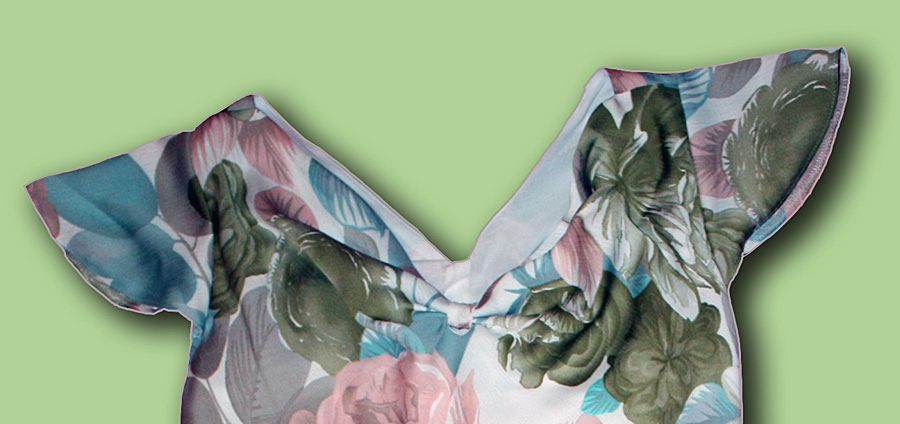 Dekolt w kształcie litery V z tyłu, z przodu dodatkowo drapowany.