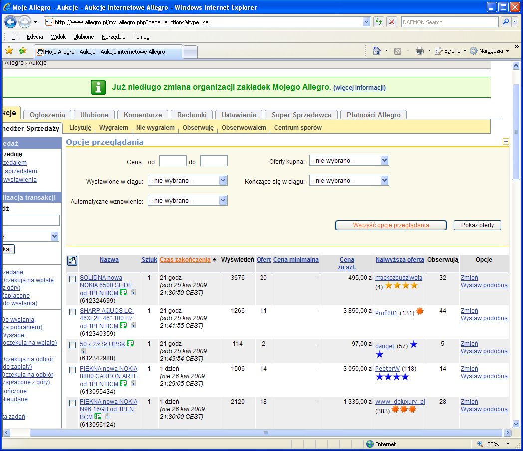 | Staram się jak najlepiej opisać każdą aukcję, abyś nie musiał szukać informacji o przedmiocie w internecie, lub kłopotać się zadawaniem pytań. Ale jeśli już będziesz miał jakiekolwiek pytania, preferuję kontakt mailowy. Odpowiadam na maile na bieżąco (najpóźniej wieczorem). Aby wysłać do mnie wiadomość, kliknij w górnym prawym rogu opisu aukcji przycisk "zadaj pytanie". Możesz też zostawić wiadomość na gg, mój numer to 313785. W ostatniej kolejności telefon, 0-791 892 399 w godzinach 9:00 - 16:00 (w dni robocze). Gdybym nie odbierał, spróbuj za kilkadziesiąt minut, allegro to nie jest moje jedyne zajęcie :-) Zanim zalicytujesz, uzupełnij swoje dane w ustawieniach konta allegro, wpisz aktualny adres do wysyłki, numer telefonu, itd. Przyspieszy to transakcje i ułatwi kontakt. W tytule przelewu wpisz swoją nazwę użytkownika allegro (nick), to mi wystarczy aby zidentyfikować wpłatę. Na wpłatę czekam 7 dni, po tym czasie występuję o zwrot prowizji i wystawiam komentarz negatywny. Po zalicytowaniu dostaniesz maila z aplikacji "menedżer sprzedaży", będziesz też na bieżąco informowany o każdym etapie transakcji (np. zmiana adresu do wysyłki, zaksięgowanie wpłaty, wysyłka). Po otrzymaniu przesyłki proszę o komentarz, będzie to dla mnie potwierdzenie, że przesyłka dotarła bez problemu i w całości. Ja swój komentarz wystawiam jako drugi, w odpowiedzi na Twój. Oczywiście jeśli mieszkasz w Bydgoszczy, lub będziesz przejazdem i chcesz odebrać przedmiot osobiście, zapraszam. Pracuje zawodowo, ale nie ma większych przeciwwskazań, abyś podjechał do mnie do firmy i odebrał wylicytowane przedmioty, oczywiście pod warunkiem, że dzień wcześniej uprzedzisz mnie, abym je przygotował dla Ciebie i zabrał ze sobą. Nie pytaj o wysyłkę za pobraniem, nie wysyłam w ten sposób. Mam blisko 1000 komentarzy, do tej pory nikogo nie zawiodłem. Poza tym, oglądasz aukcje SuperSprzedawcy, więc tylko klikaj, zrób przelew, resztą zajmę się ja. Jeśli nie masz konta bankowego, daj znać, pomogę Ci je szybko założyć. Wpłata na konto bankowe 21 1140 2004 0000 3202 0894 7781 (mBank), 70 1060 0076 0000 3070 0076 4441 (BPH) - wysyłka w ciągu 1-2 dni roboczych od zaksięgowania wpłaty. Płatności Allegro - tylko w połączeniu z opcją ESCROW, księguje dwa razy w miesiącu, wysyłka w ciągu 7-10 dni od zaksięgowania. Jeśli zakupisz więcej produktów, oblicz ich łączną wagę (jest podana na każdej aukcji) i policz koszty wysyłki wg poniższego zestawienia (polecony): do 100g - 5,00 zł, 100 - 500g - 8,00 zł, 500 - 1000g - 10,00 zł, 1000 - 2000g 13,00 zł, PRIORYTET - dopłata 1,00 zł, UBEZPIECZENIE - dopłata 1,00 zł za każde 50 zł wartości przesyłki. Jeżeli sam nie chcesz liczyć kosztów wysyłki, wyślij do mnie maila z info jaką chcesz przesyłkę, zwrotnie odeślę dokładne wyliczenie. W przypadku przesyłek nietypowych, powyżej 2kg, zagranicznych, proszę o kontakt przed licytacją. |