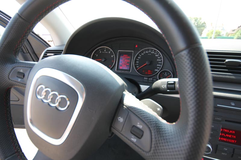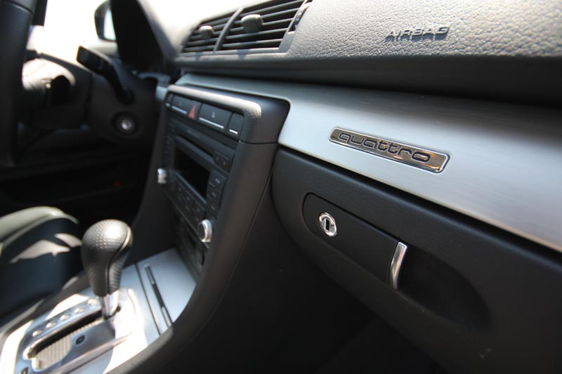 Nie będę rozpisywał się na temat jego wyposażenia wymienię tylko najciekawsze rzeczy (moim zdaniem) : światła doświetlające zakręty, przednie fotele ustawiane elektrycznie, fotel kierowcy z pamięcią, samo ściemniające lusterko wsteczne z kompasem, gniazdo Iphona, możliwość podłączenia każdego telefonu do zestawu głośnomówiącego przez bluetooth, tempomat, bagażnik otwierany pilotem, możliwość zmiany biegów łopatkami przy kierownicy, rewelacyjne radio Audi Symphony ze zmieniarką na 6 płyt i super felgi J