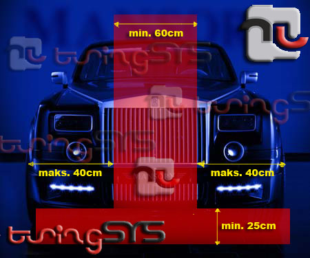 - nie dalej niż 40cm od bocznej krawędzi obrysu auta