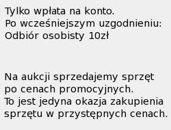 120,00 zł | 1 | wto 11 sie 2009 15:06:40 CEST |