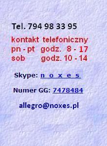 Dlaczego mielibyscie Państwo dokonać zakupów własnie na tej aukcji a nie u kogos innego? Czym różnimy się od innych sprzedajacych? Kupujac u nas robicie Państwo zakupy w legalnie działajacej firmie. Standardowo do każdej przesyłki dołączony jest paragon. Istnieje również możliwosć otrzymania przez Państwo faktury VAT (w tym celu proszę o przesłanie danych na które ma ona zostać wystawiona). Cała transakcja przeprowadzana jest błyskawicznie, nie ociagamy się z wysyłaniem przesyłek. Szybko również odpisujemy na pytania zadawane droga mailowa badz przez GG, przez co jesteśmy niemalże w ciagłym kontakcie z Wami! To wszystko sprawia, że klient dokonujacy zakupu u nas jest zadowolony i chce wrócić na nasze aukcje. Sprawdz a przekonasz się o tym!