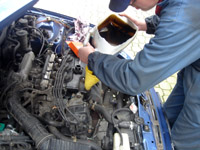 Rozgrzano silnik do temperatury roboczej a następnie zlano olej.